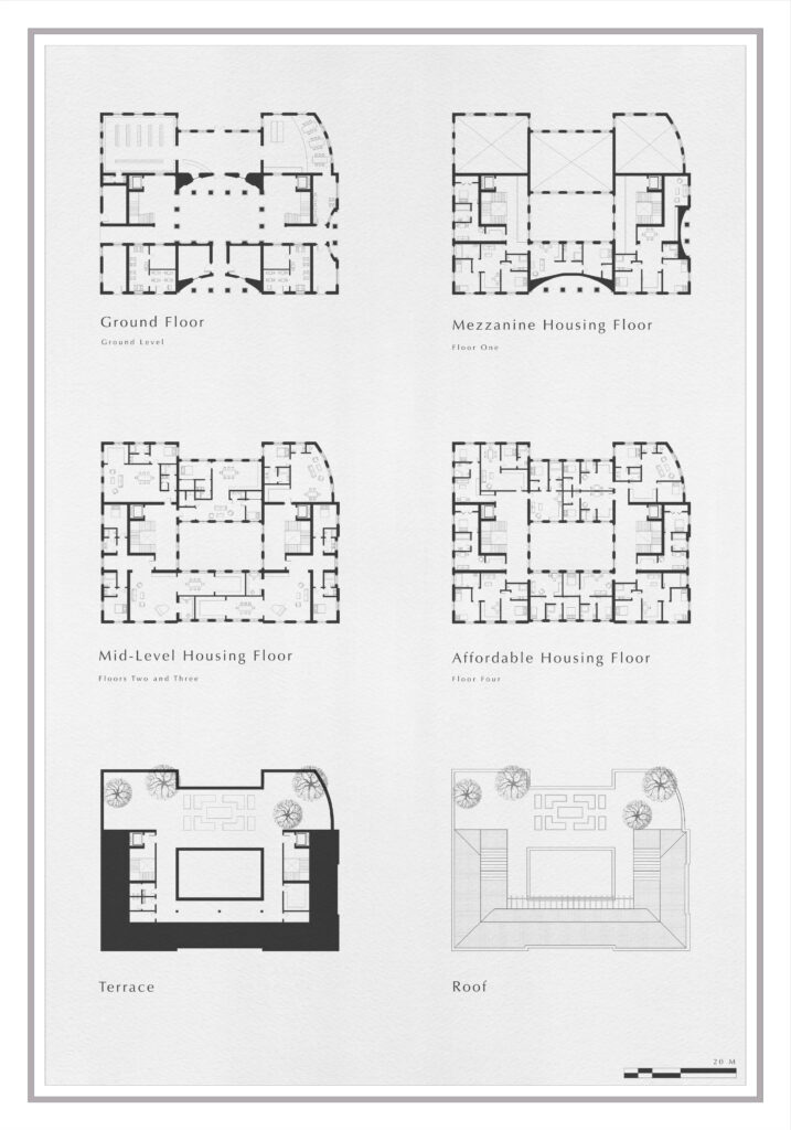 This Mixed-Use building situated in the heart of Rome by the Tiber focuses on the concept of architecture as a reflection of a city’s needs.  It incorporates a small public library on the commercial ground floor to service the community as well as a range of mixed-income apartments above.