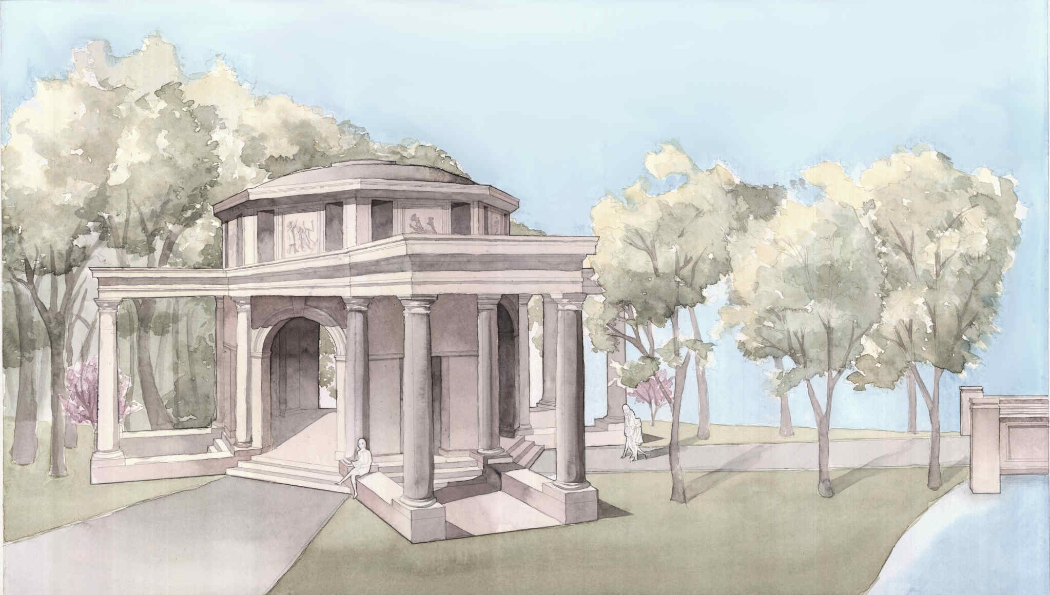 A pavilion of white stone rises up from the tranquil waters of a lake This pavilion […]